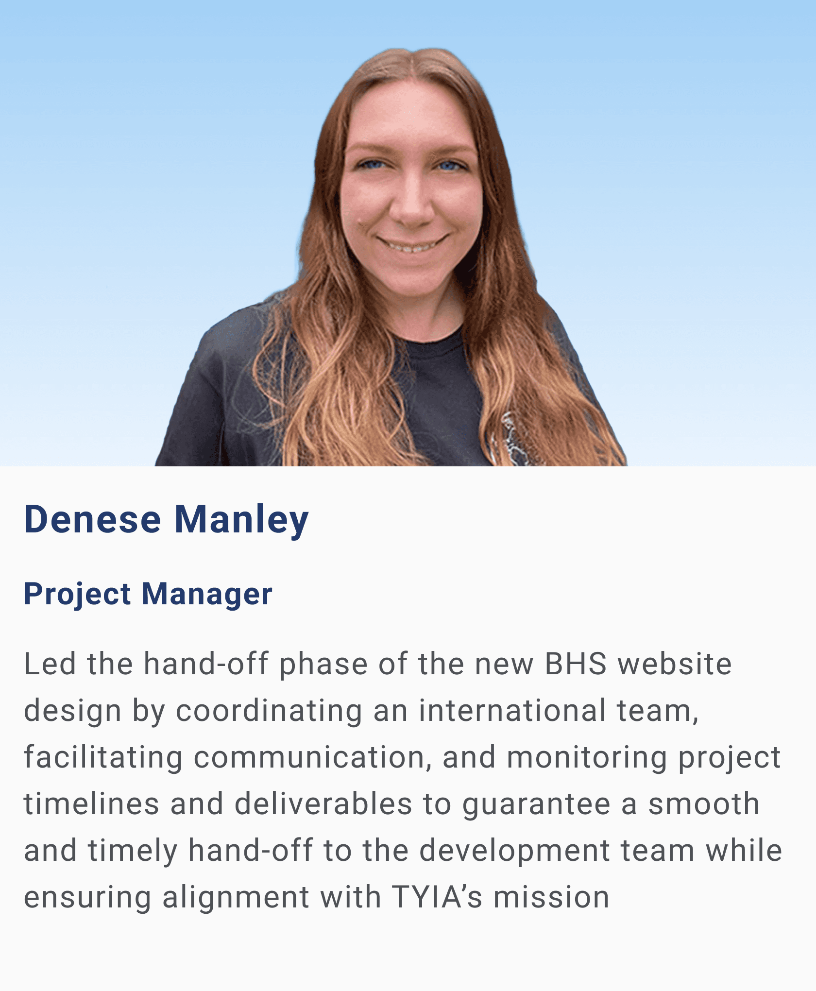 Once the TYIA BHS site is live, we will monitor user experience through analytics and feedback, making necessary design iterations to improve it.