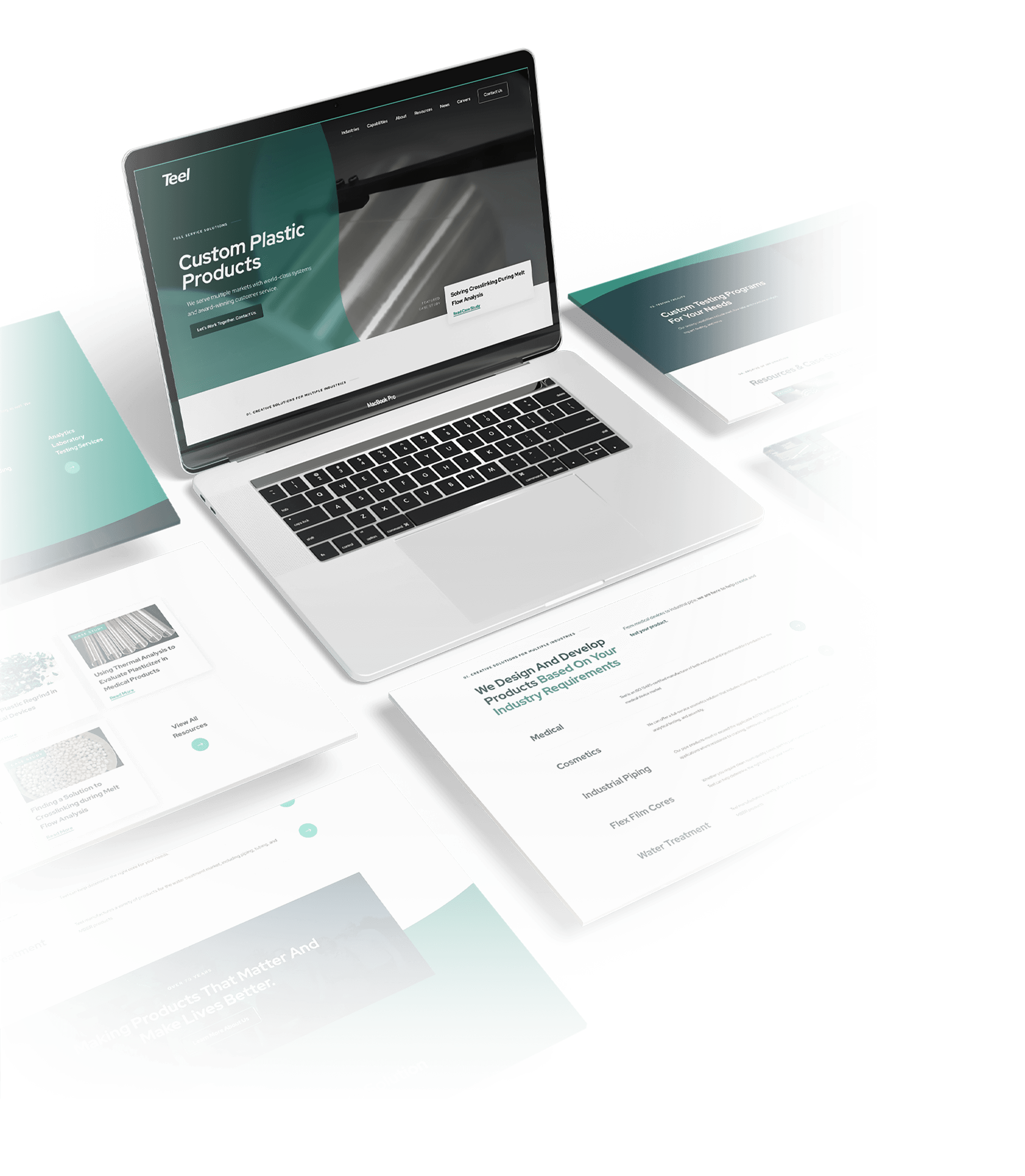 The Medical page, a child page of the Industries page, was designed to emphasize Teel Plastics' capabilities in manufacturing medical-grade products. My approach focused on creating a clean, professional layout to convey trust and precision, key qualities in the healthcare sector. I highlighted Teel’s clean room manufacturing, stringent quality control, and specialized material capabilities to communicate their commitment to safety and innovation. Additionally, I showcased core services like extrusion and injection molding to provide prospective clients with a clear view of Teel’s expertise in delivering precise, high-quality medical components.