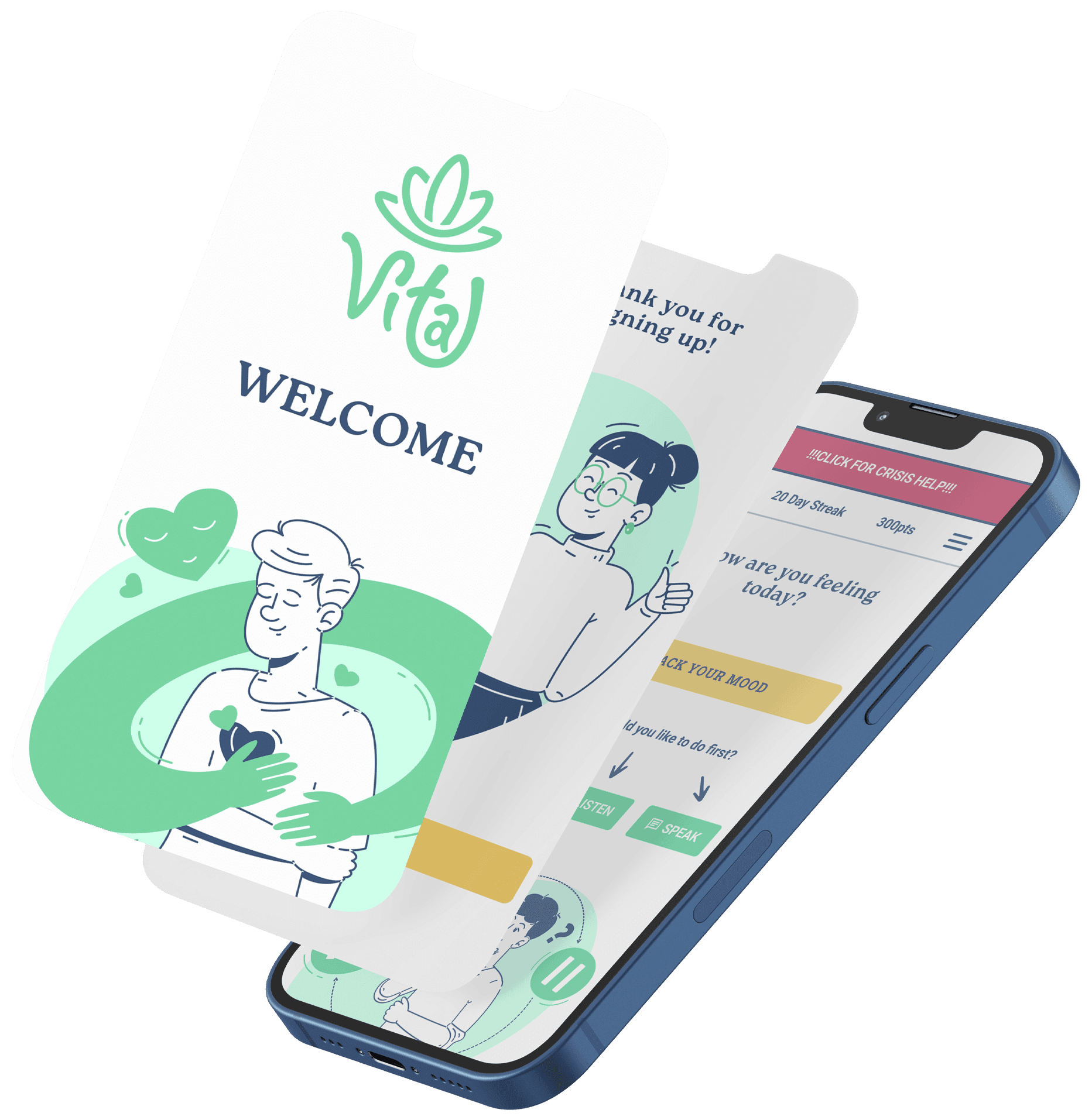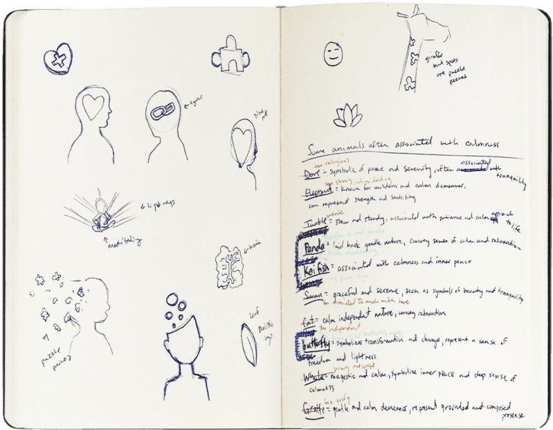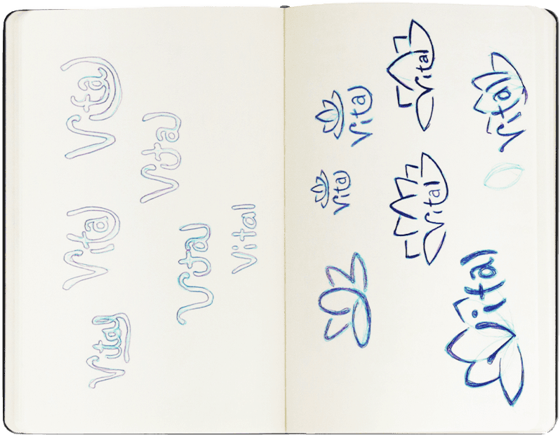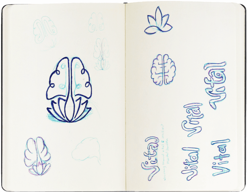 I looked online for ideas and sketched out various concepts. During this process, I decided to go with the name “Vital”. It highlights the significance of prioritizing mental well-being as an essential aspect of a fulfilling and healthy life. It also conveys a sense of empowerment, encouraging users to recognize the vital role their mental health plays in their overall quality of life.