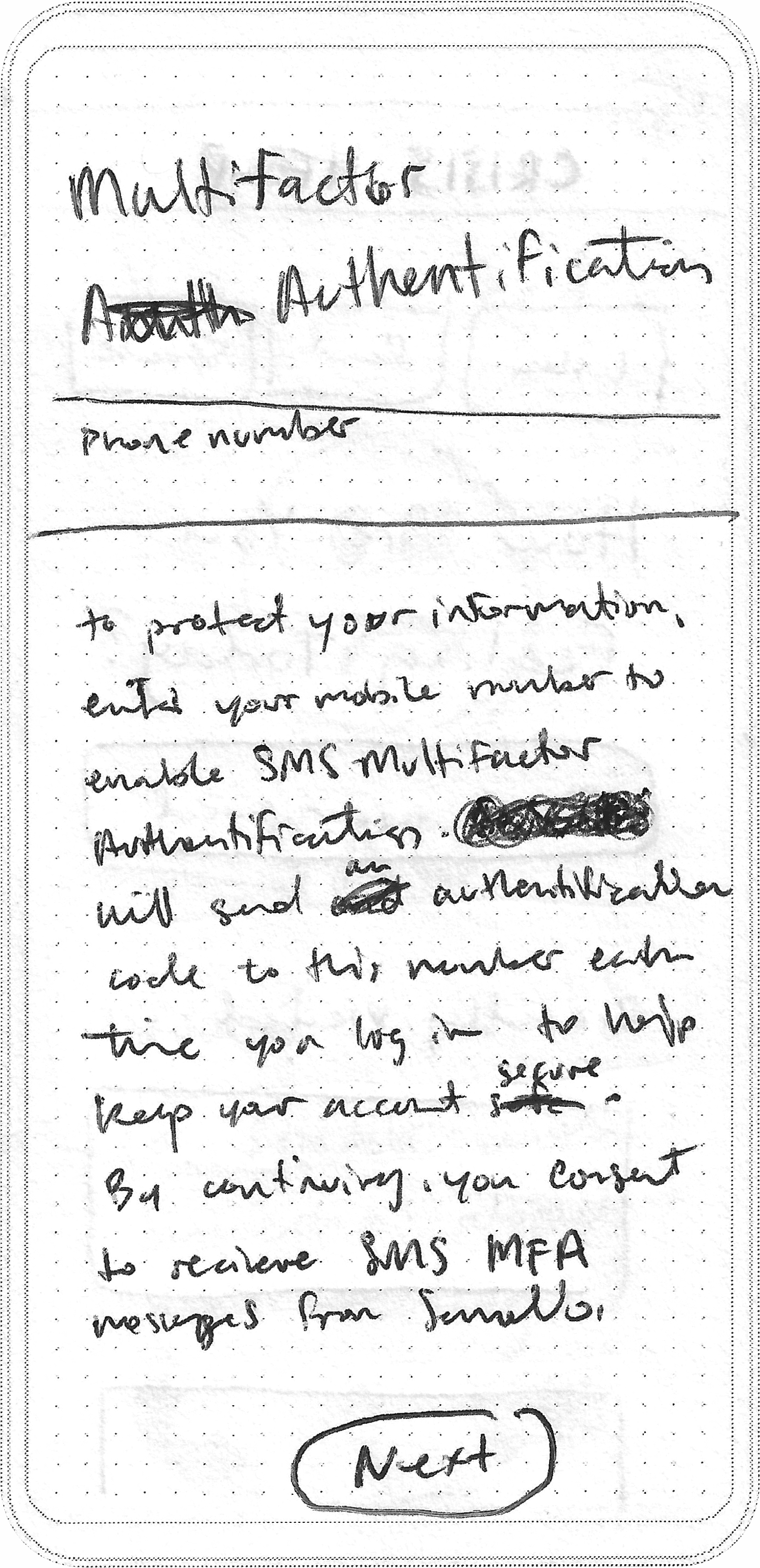 I started with a simple and secure onboarding process, aiming to gain a deeper understanding of the user's needs. I sketched a preliminary concept of the process, drawing from insights gathered through previous research.